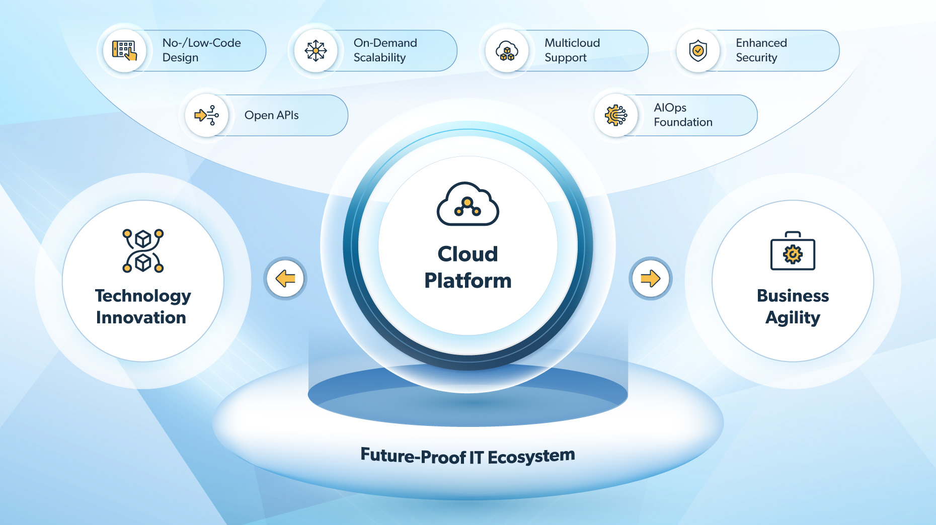 Netcracker Cloud Platform augments the IT environment with high availability, robust security and a flexible low-code configuration.