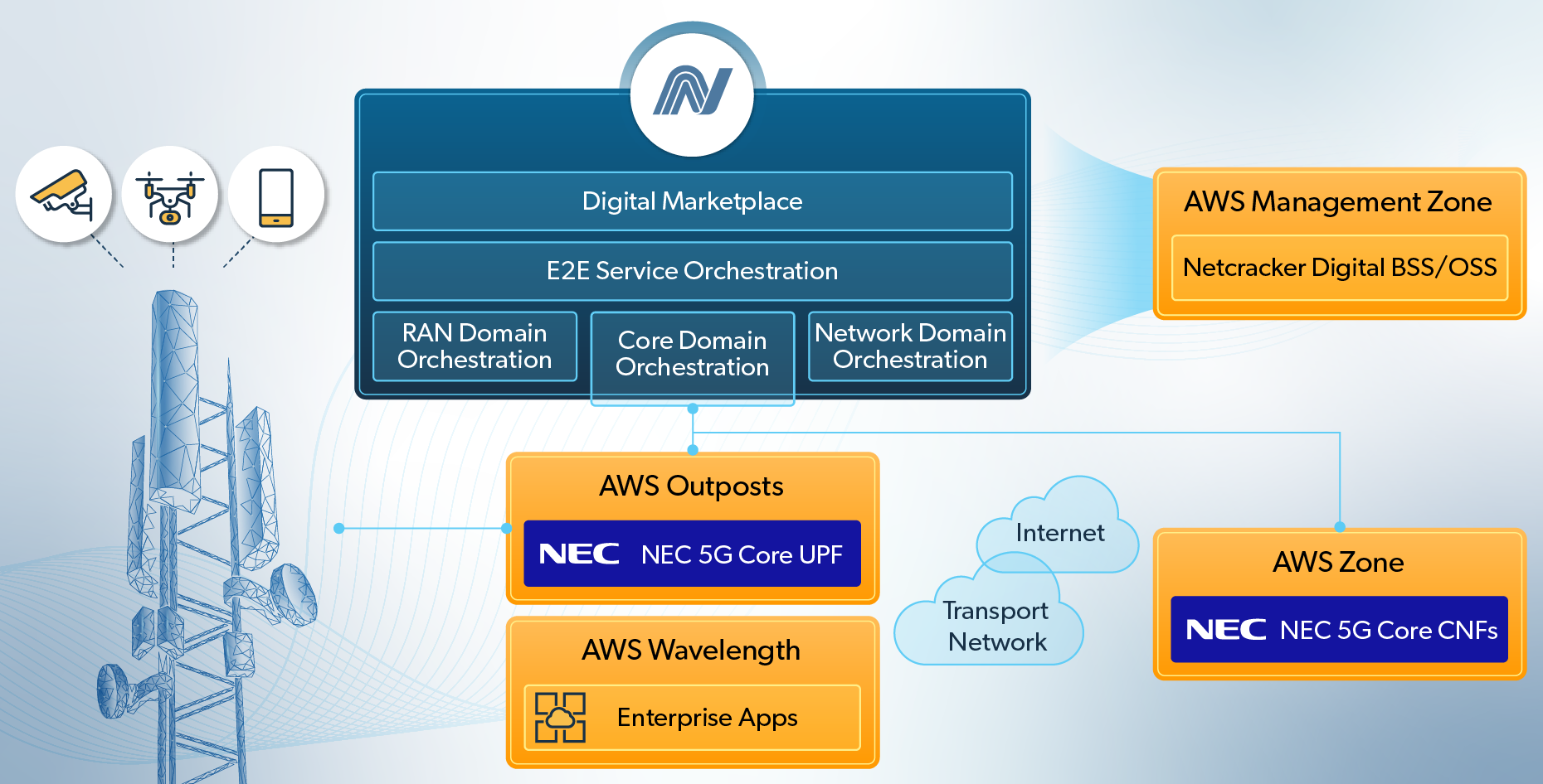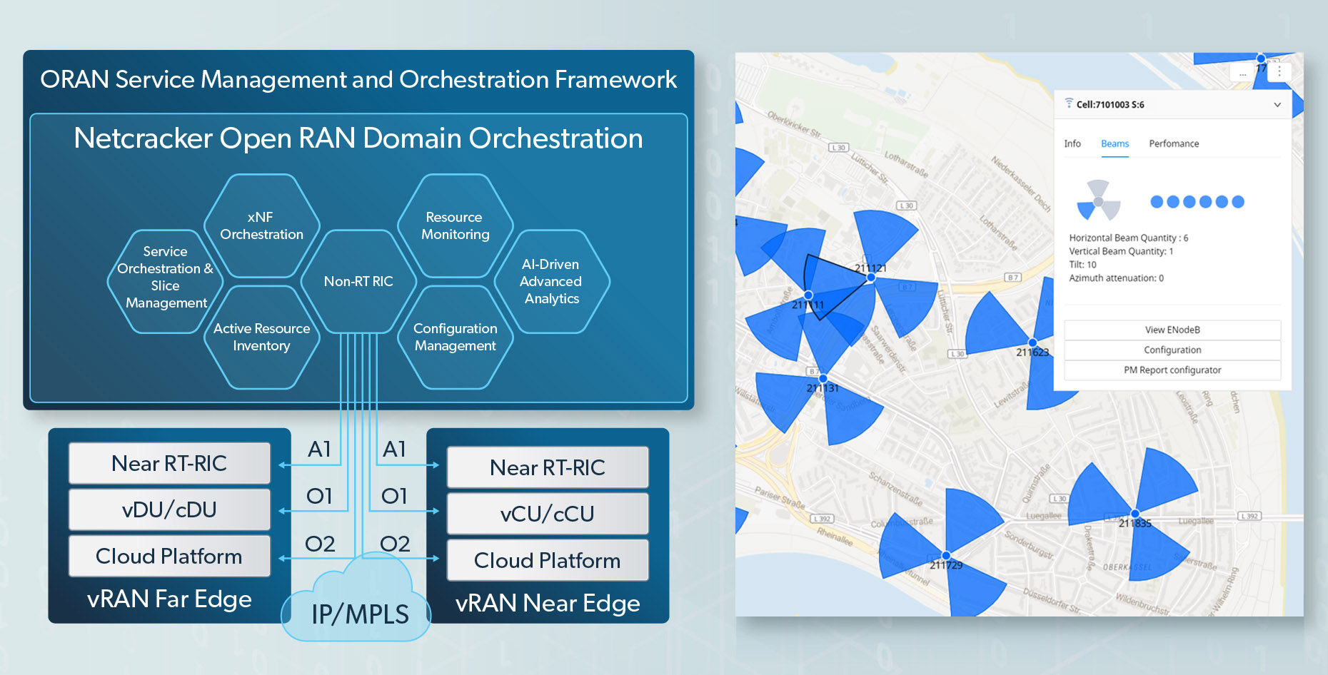 Netcracker’s 5G Operations Automation includes our Open RAN Domain Orchestration to automate all aspects of the RAN domain from planning and design to activation, assurance and optimization. E2E visualization and a single pane of glass maximize RAN performance and enable a smooth transition to 5G and RAN slicing. Netcracker’s Non-Real-Time RAN Intelligent Controller (Non-RT RIC) intelligently optimizes the RAN using AI/ML and rApp use cases. The solution also leverages the expertise of Netcracker’s parent company, NEC, and benefits from pre-integration with many industry-leading Open RAN partners.