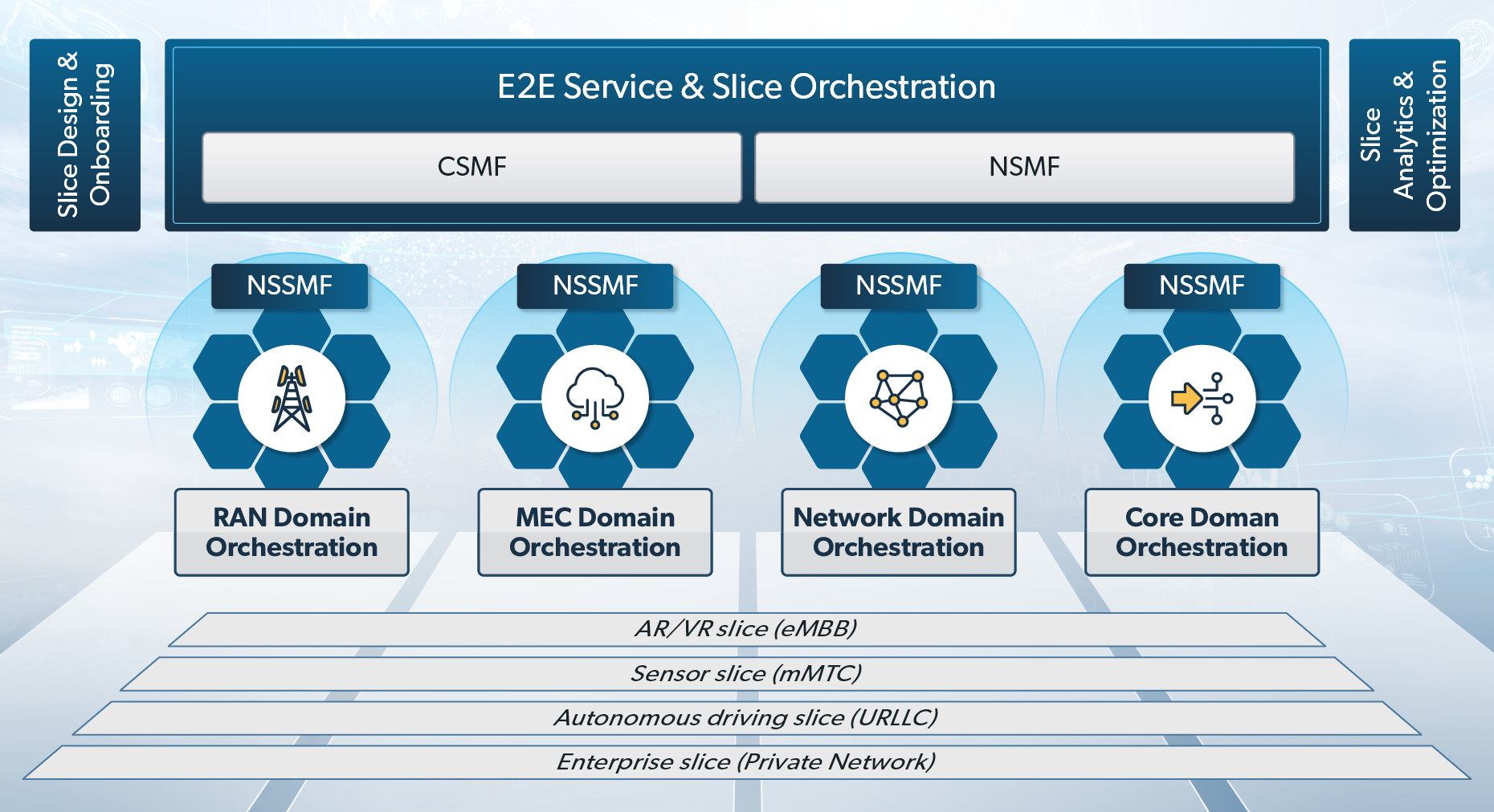 Achieves cross-domain network slicing with the Customer Service Management Function (CSMF) and Network Service Management Function (NSMF) in Netcracker’s E2E Service Orchestration.