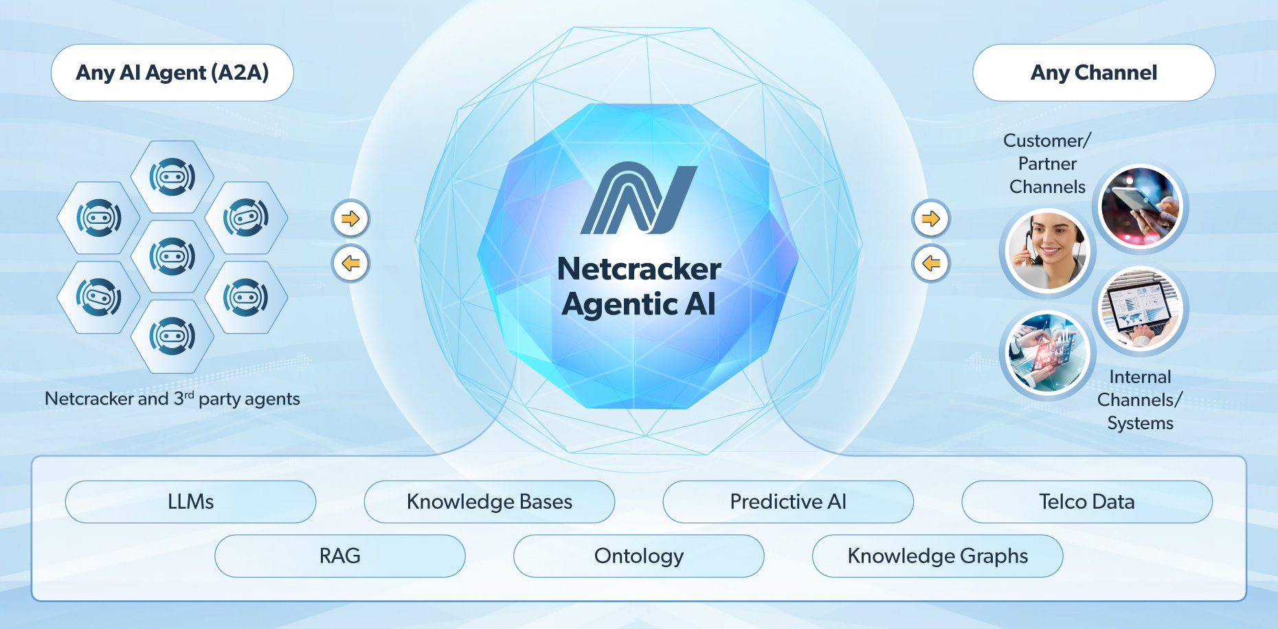 Netcracker embeds AI across the entire solution to automate decision-making and improve business outcomes while maintaining the highest levels of quality and security. With Netcracker GenAI Telco Platform and AI Agents, customer engagement and internal employee business assistance become intuitive and automated.