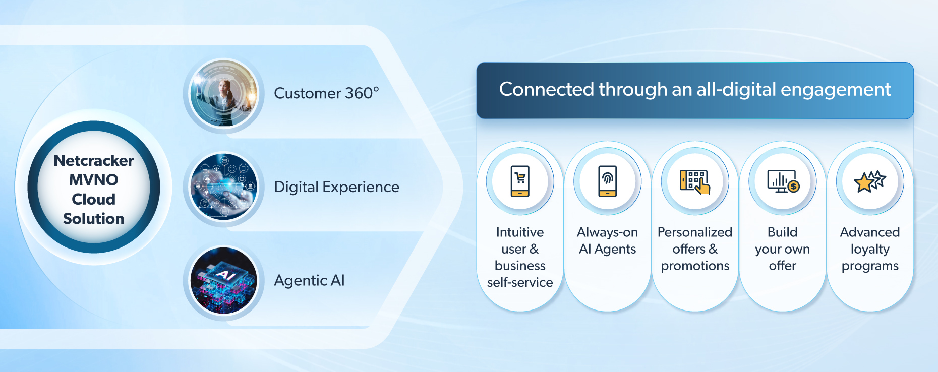Netcracker’s consistent focus on digital customer experience, unparalleled telecom expertise and self-service capabilities help MVNOs launch services in weeks, acquire new customers in minutes and build a strong brand reputation. The solution lets brands enter the mobile market with minimal upfront investment and lower ongoing costs, leveraging the telcos’ existing network infrastructure while scaling effectively as their customer base grows.