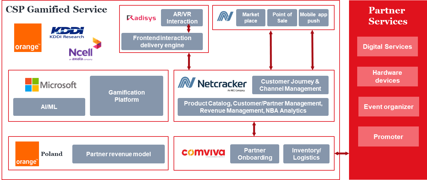 The Catalyst shows how CSPs can redefine their position in the ecosystem and play a much more central role in their customer’s digital lifestyle. Using key components from Netcracker Digital BSS, including customer journey management, partner management, product catalog, analytics and revenue management together with gamification and AI/ML from Microsoft, partner onboarding from Comviva, and AR/VR interactions from Radisys, the project uncovered new monetization opportunities for CSP and partners and demonstrated the significant interest and value it adds for consumers.