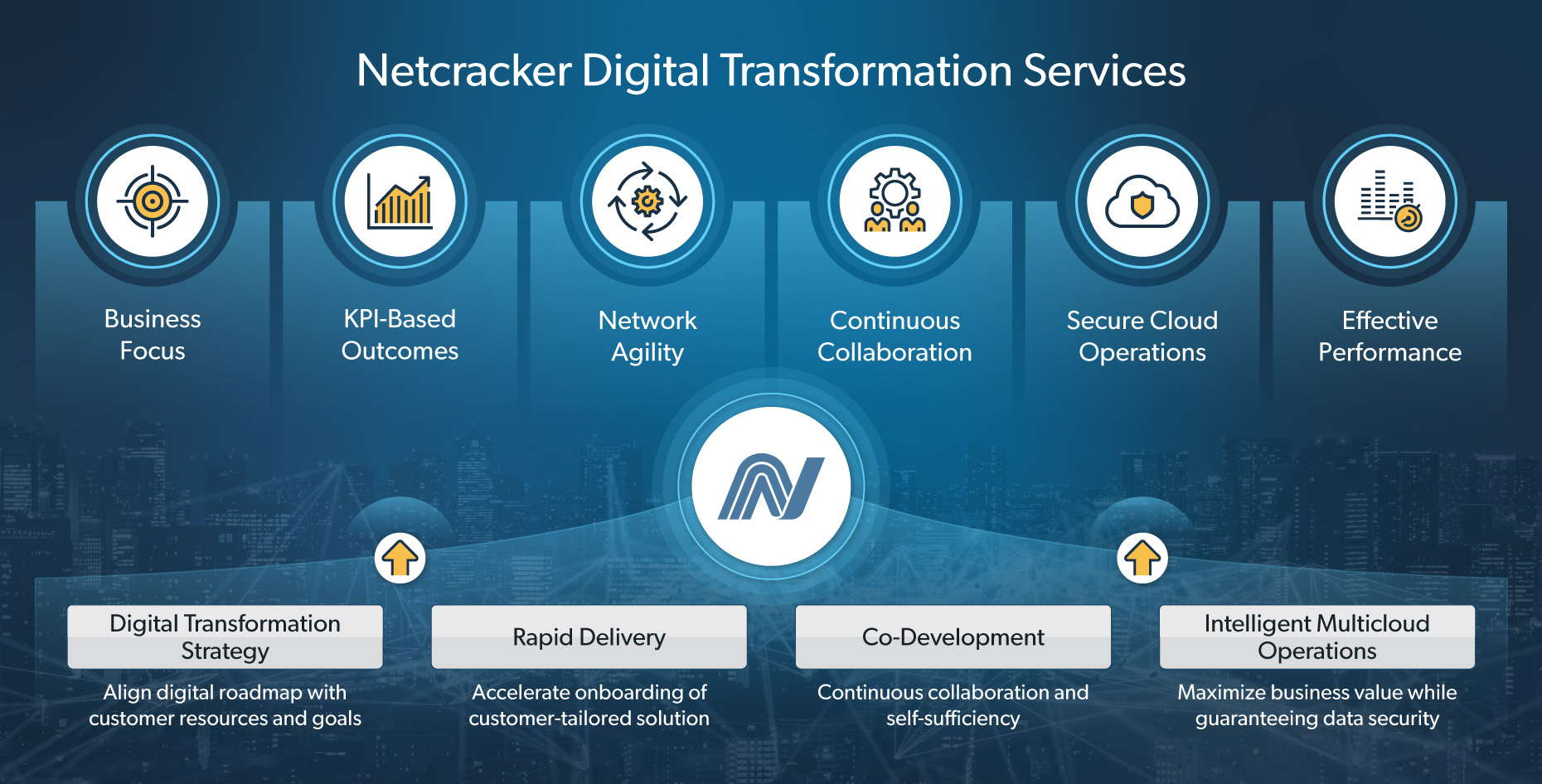Based on an open, modular and digital-native foundation, Netcracker Digital Platform drives business growth by delivering immersive experiences, innovative business models and intelligent automation. It also accelerates CSPs’ digitalization efforts with leading transformation services.